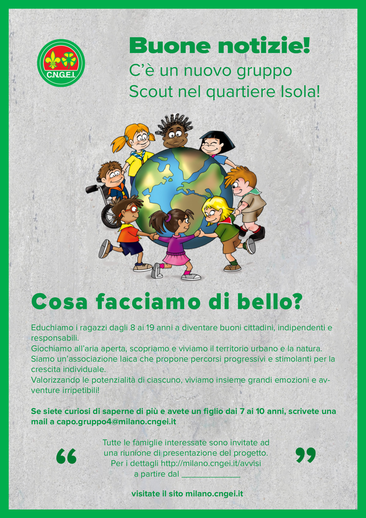 si terrà una riunione informativa per i genitori interessati ad iscrivere i propri figli al nuovo gruppo 4 del CNGEI Milano.