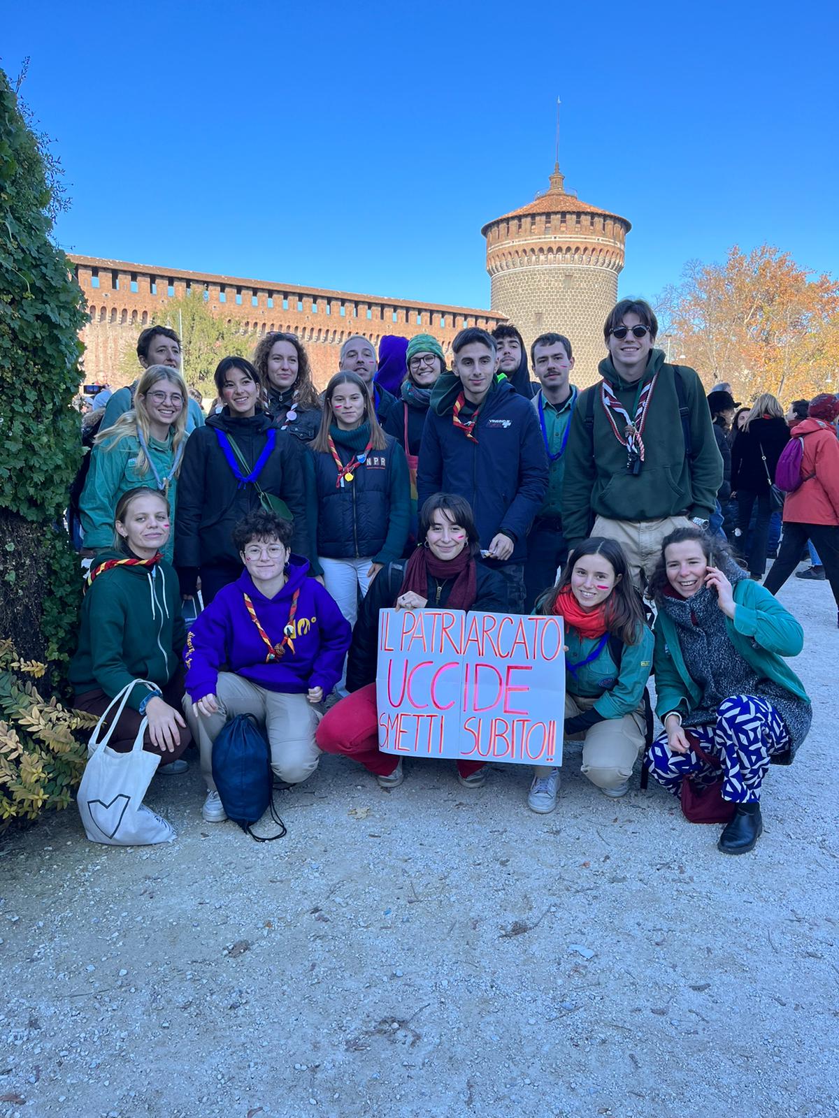 Alla manifestazione erano presenti la Commissaria di Sezione Marta Lodola, la responsabile del Clan Caterina Vismara, cape/i, senior, rover, esploratrici/ori e lupette/i dei più svariati gruppi della città. Il vento gelido dell’inverno meneghino non ha intimorito i nostri animi, già temprati dalla vita all’aria aperta, e siamo riusciti a condividere momenti di gioco e di chiacchiere amichevoli pur consapevoli che stessimo vivendo una giornata triste e di riflessione. Erano presenti anche altre associazioni che operano sul territorio e personalità di spicco come il sindaco Giuseppe Sala e l’influencer Chiara Ferragni ma, al di là delle distinzioni, è stato bellissimo percepire il calore di tutta la folla che pretendeva giustizia verso tutte quelle forme di violenza (fisica, psicologica, verbale, economica etc..) che ancora subiscono molte donne. Purtroppo le statistiche ci dicono che ad oggi la situazione è molto grave (in Italia ci sono stati 106 femminicidi dall’inizio dell’anno, praticamente uno ogni tre giorni) però bisogna ricordarsi che le persone stanno progressivamente prendendo coscienza del problema e vengono realizzate forme di assistenza concreta verso tutte quelle vittime di uomini insensibili.