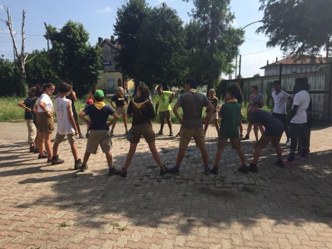 Giunti alla casa siamo stati accolti dalle responsabili della struttura e dal gruppo degli ospiti e, come veri scout, abbiamo proposto di conoscerci con dei giochi di presentazione. In questo modo abbiamo rotto il ghiaccio con loro e l’invito a giocare insieme è parso subito naturale, sia da parte nostra che dei migranti, che in molti casi avevano quasi l’età dei nostri ragazzi e ragazze.