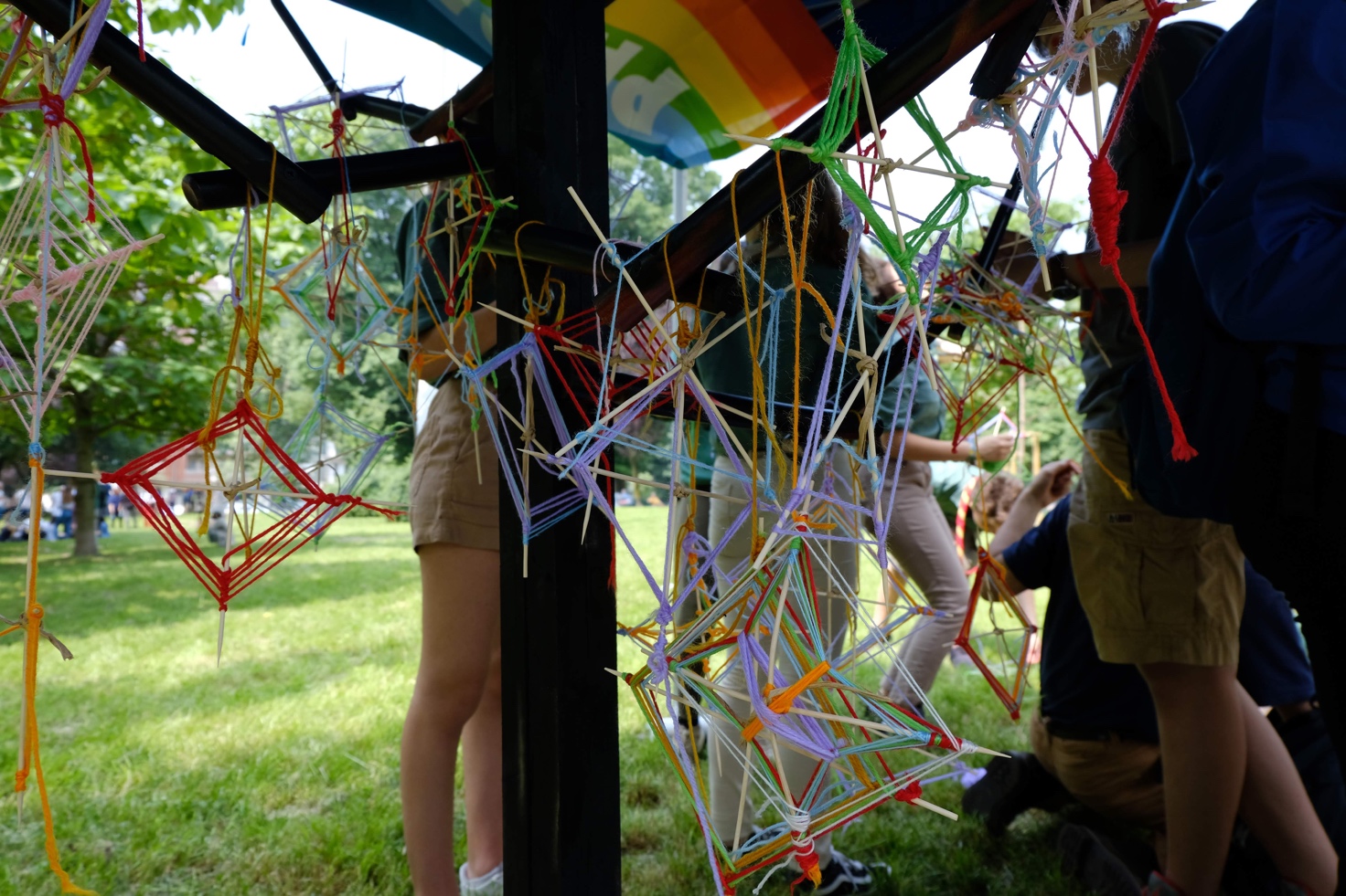 Gli stand erano tutti molto divertenti e attraverso dei giochi e degli spunti di riflessione ci hanno fatto pensare a cosa è la pace per noi, al legame che abbiamo con gli scout e a quanto è importante accogliere la diversità per creare la pace. Alla fine di ogni attività gli adulti che ci seguivano nelle attività ci dipingevano sul viso una striscia colorata e al termine della giornata si è formata la bandiera della pace.