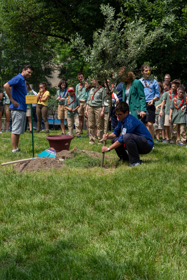 Per concludere i rappresentanti dell’organizzazione di questa giornata hanno piantato tutti insieme un ulivo, simbolo di pace e accoglienza, che poi continuerà a crescere dentro ad una forma di pistola fatta di fil di ferro fino a romperla: una metafora della pace che trionfa sulla guerra e sulla violenza.