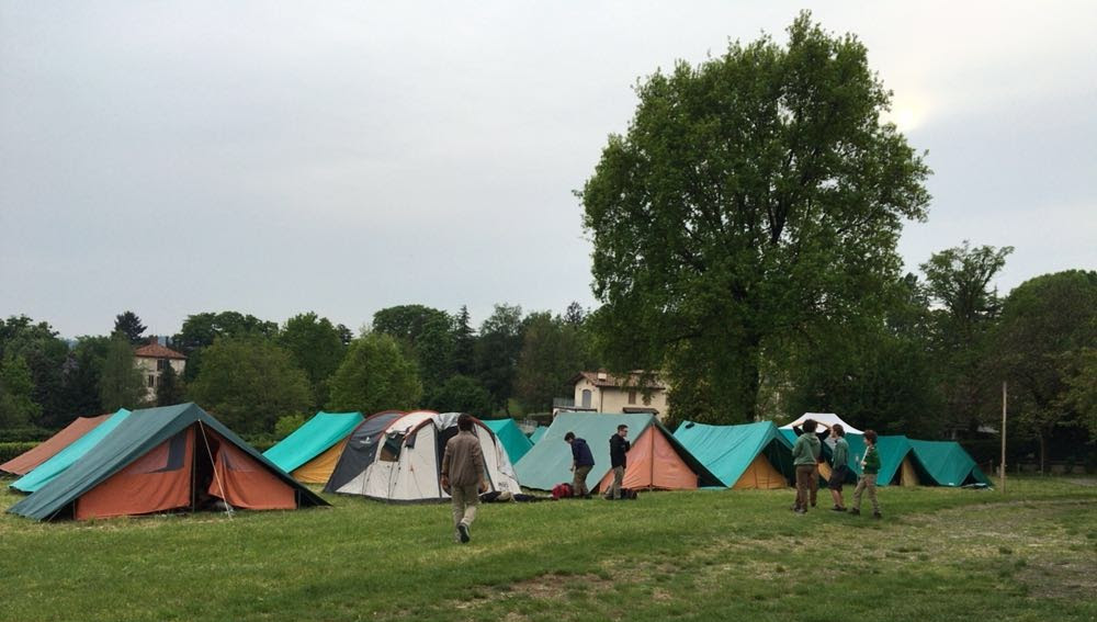 Il campo degli esploratori, nel Ranch Gaudenzia, gentilmente concesso. Ragazzi e ragazze di 12-15 anni hanno piantato le tende per terra, guardando il cielo e sperando che non piova. Un sole splendente ci è stato amico.