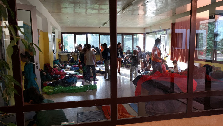 Sgombrate da banchi e cattedre, decine e decine di aule scolastiche hanno ospitato per due notti i materassini e i sacchi a pelo dei lupetti (8-11 anni d'età).