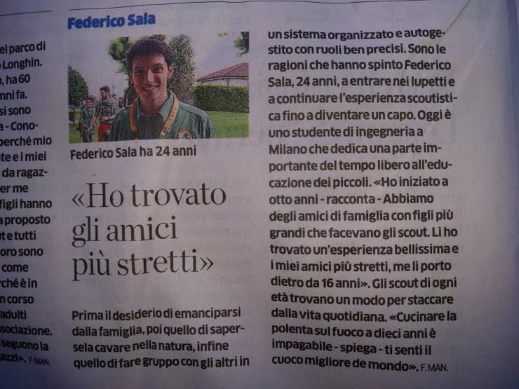 Dal quotidiano locale La Provincia di Como, Federico Sala, uno dei Capi di Milano sorride, ricordando i suoi sedici anni di scautismo. Da lupetto a responsabile educatore di centinaia di ragazzi.